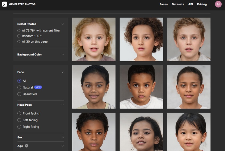 Als Benutzer kann man dabei aus über zwei Millionen generierter Bilder auswählen und diese nach bestimmten Kriterien filtern: Zum Beispiel Geschlecht, Alter, Haarfarbe, Augenfarbe, Gesichtsausdruck und einige mehr.