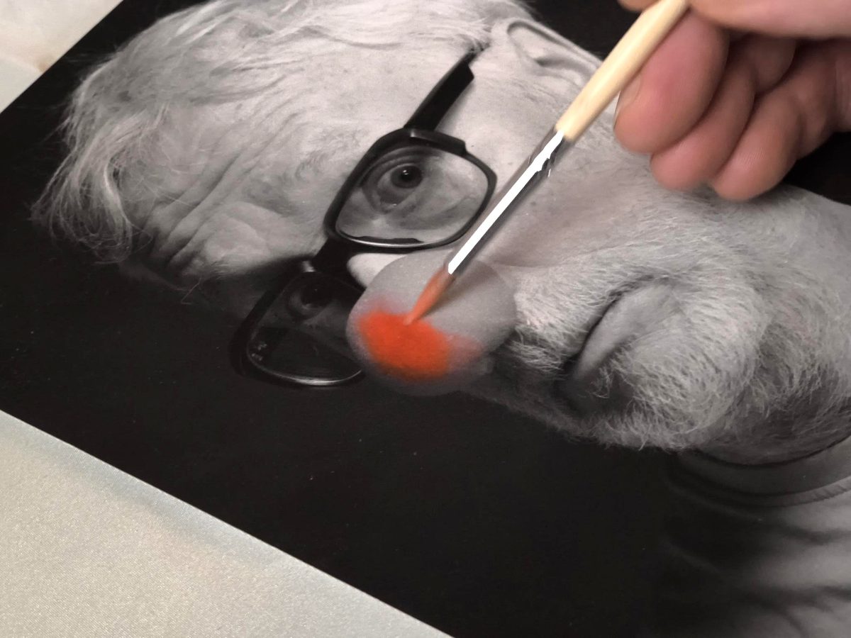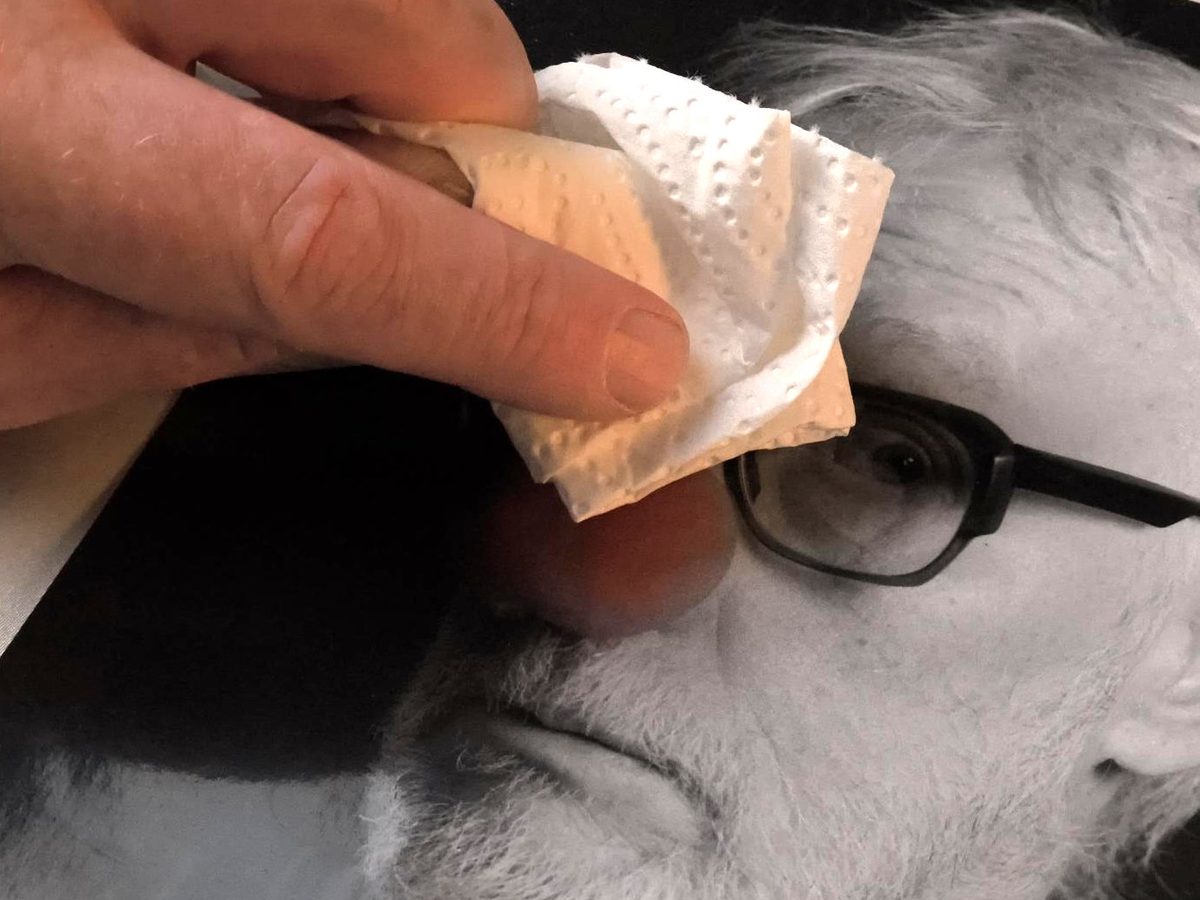 Nach dem Abtupfen sollte die bearbeitete Stelle noch feucht, aber nicht mehr nass sein. Die Farbe sollte sich weich in das Foto eingefügt haben.